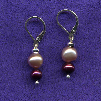 Pink and Cranberry double pearl earrings The palest pink, the richest cranberry—colors that bring out the glow in your cheek and the sparkle in your eye. And they'll look even better when worn with the matching Pink and Cranberry pearl bracelet (see above). Please inquire about price |