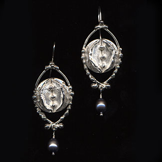 Whispy Tendril Earrings with Pearl |